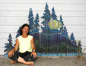 My background in environmental design, biology and scenic painting, are the driving forces behind my artwork. Since I moved to Yellowknife in the year 2000, I have done a lot of murals and painting outside in the summer. I produced a collection of paintings every five years and this collection hangs on the outside of Centre Square Mall in downtown Yellowknife.
