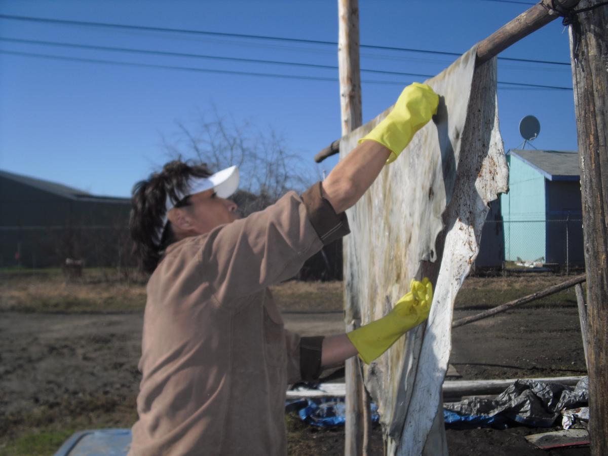 When we use fur and hide, we respect the materials we work with. When hunters set traps, they do a dance so the animal will come to the snare. The items that are made from that animal must be respected. You also need to take care and make good stitches, not big lazy stitches. When I started making slippers I had to undo the stitches about 8 or 9 times until it was perfect and then I could move on to another project.